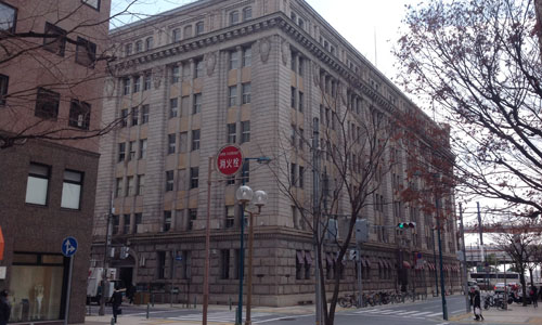阪神高速道路京橋を下車し、出口を左折し又北へ三宮駅方面に左折、2号線を超えて最初の角を左折して通りを2つ超えた南側のビルです。